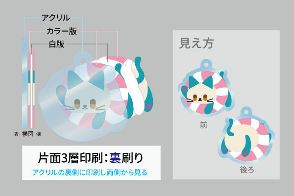 | 印刷 | UVインクジェット印刷(片面3層印刷:裏刷り)![]() |